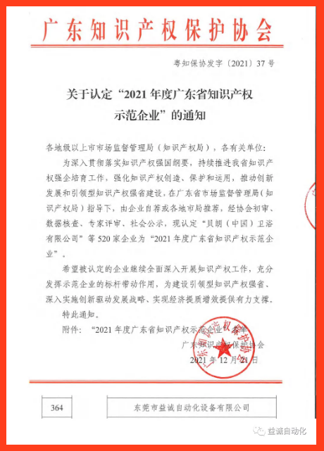 荣获“2021年度广东省知识产权示范企业”称号未来,我们将再接再厉,继续深耕专业领域,不断研发出更多的“专精特新”产品,持续激发创新研发活力,发挥知识产权示范企业的引领作用,为行业的发展创新作出应有贡献。
