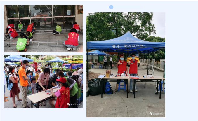 在活动现场,一个个身穿“益诚自动化志愿者”红色马甲的身影穿梭忙碌,搬桌子、布置展位、现场指引、游戏裁判、发奖品、与小朋友互动... ...益诚自动化志愿者们给活动主办方、家长和小朋友们留下了深刻印象。